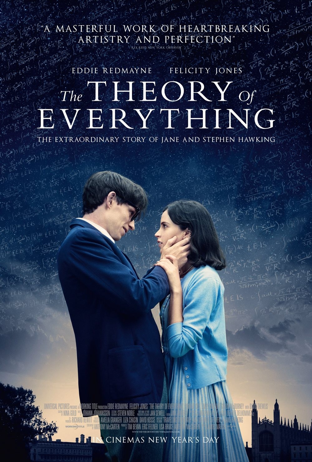 In 1963, a young Stephen Hawking (Eddie Redmayne) and the lovely Jane Wilde (Felicity Jones) meet at a Cambridge mixer and immediately hit it off. It’s not long before they find themselves in love but their fairytale comes off the rails when Stephen is diagnosed with a debilitating and likely life-ending disease. This devastating development tests their strength and resolve as a couple and, ultimately, whether or not their love can persevere through extreme hardship.