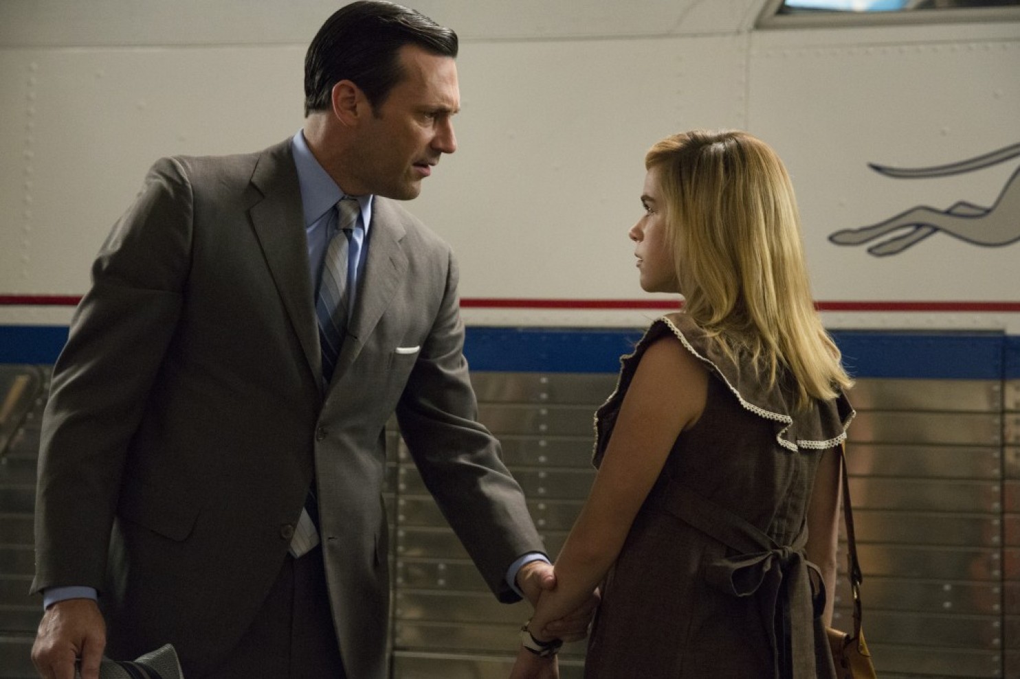 However, the star of this episode is Sally. I’ve always considered her to be one of the most important characters on the show. While she often stood in the periphery, Sally seemed destined for something greater as her innocence gets tested, as she becomes a witness to the real world. One of her most memorable scenes is in “The Arrangement,” when after learning about the death of Grandpa Gene, she watches as a Vietnamese Buddhist monk sets himself on fire on TV. Sally has always been an eye witness to the cultural and political turmoil and the dysfunctional relationships between her parents and the people around her. It is not surprising that Sally notices when Betty flirts with Glen and her 17-year old friend hits on Don. While she underestimates her parents, her assessment of Don and Betty is not off the mark, “Anyone pays attention to either of you, and they always do, and you just ooze everywhere.” While her friends have goals and dreams of becoming senators and UN translators, Sally just wants to get on the bus and leave her parents for fear of becoming like them.