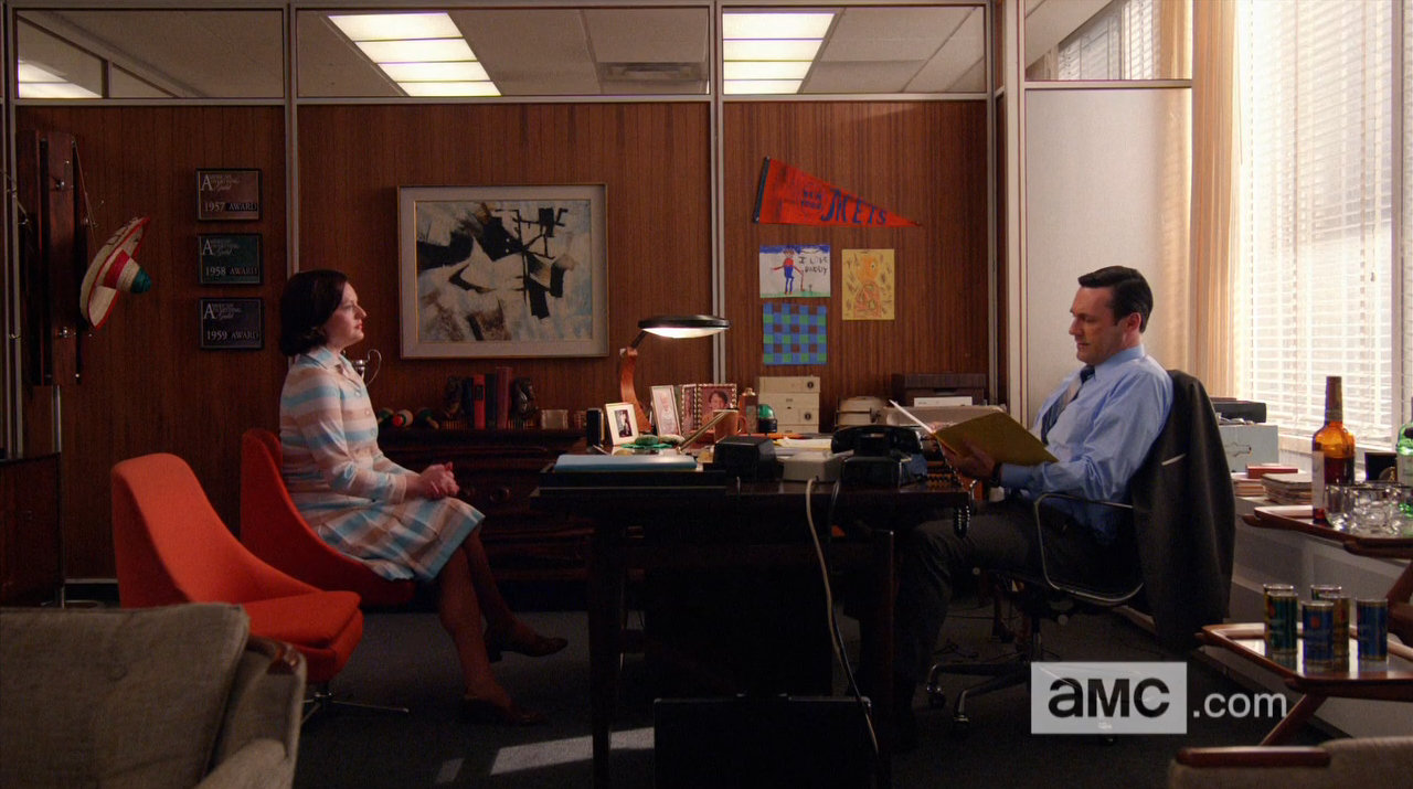 While I understand the symbolism Matthew Weiner was going for between Don and his apartment, it is also quite a stretch that Melanie would have such difficulty selling the apartment. Sure, it “reeks of failure” but it is still an apartment in the upper-east side. Perhaps it’s more proof of Don’s downfall; he can’t even hire a decent real estate agent. As if Melanie’s insults weren’t bad enough, Don’s character is further questioned by Mathis. After getting fired from an account for listening to Don’s ill-advised tip, Mathis recounts a story to Don about how Lee Garner Jr. used to want Don in the Lucky Strikes meeting only so he could fantasize about him. If you don’t remember, Lee Garner Jr. was responsible for the firing of Salvatore Romano after he made advances on Sal. Mathis accuses Don of lacking character, and that he is just another handsome face.